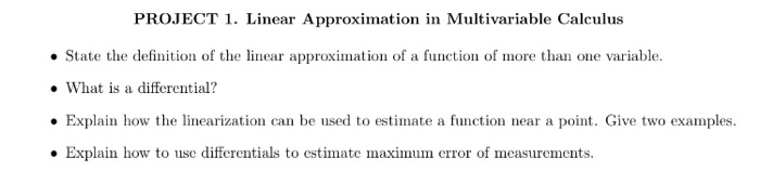 Solved PROJECT 1. Linear Approximation in Multivariable | Chegg.com