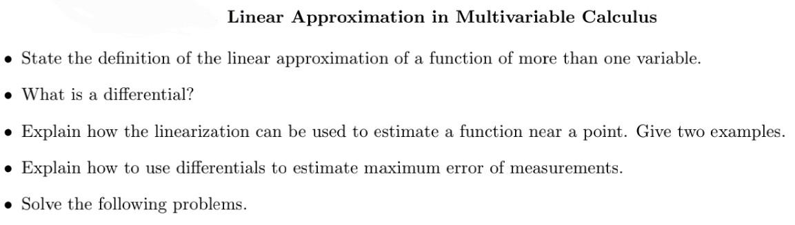Solved Linear Approximation in Multivariable Calculus • | Chegg.com