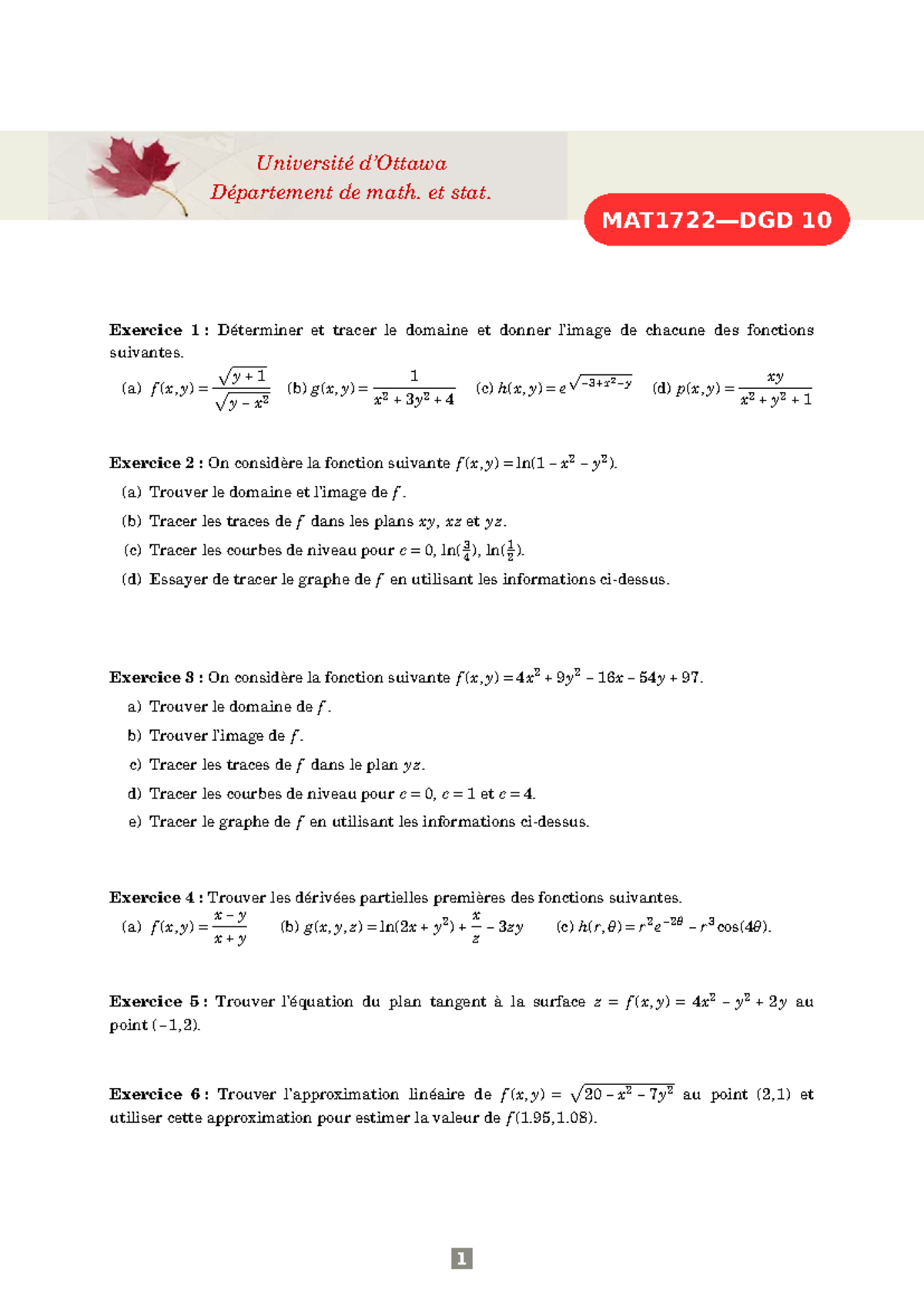 DGD-10 - Exercice et Pratique en Calcul Multivariable - Studocu