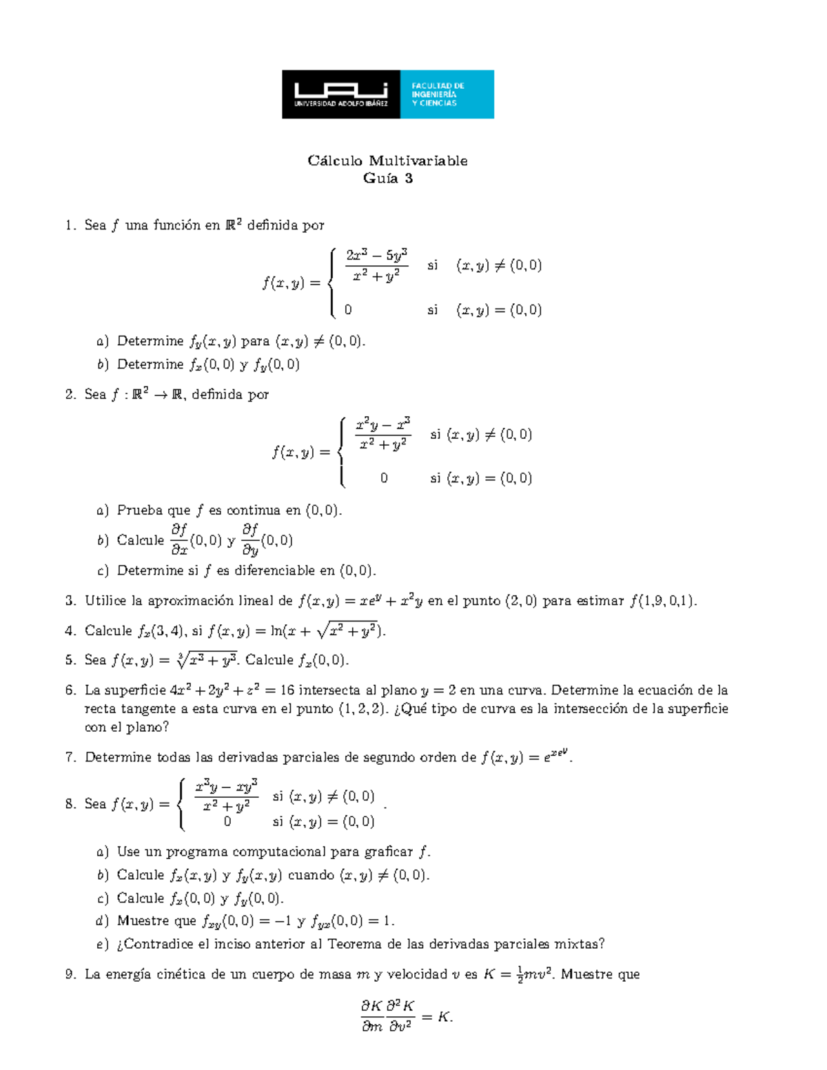Guía 3: Cálculo Multivariable (Cálculo III) - Studocu
