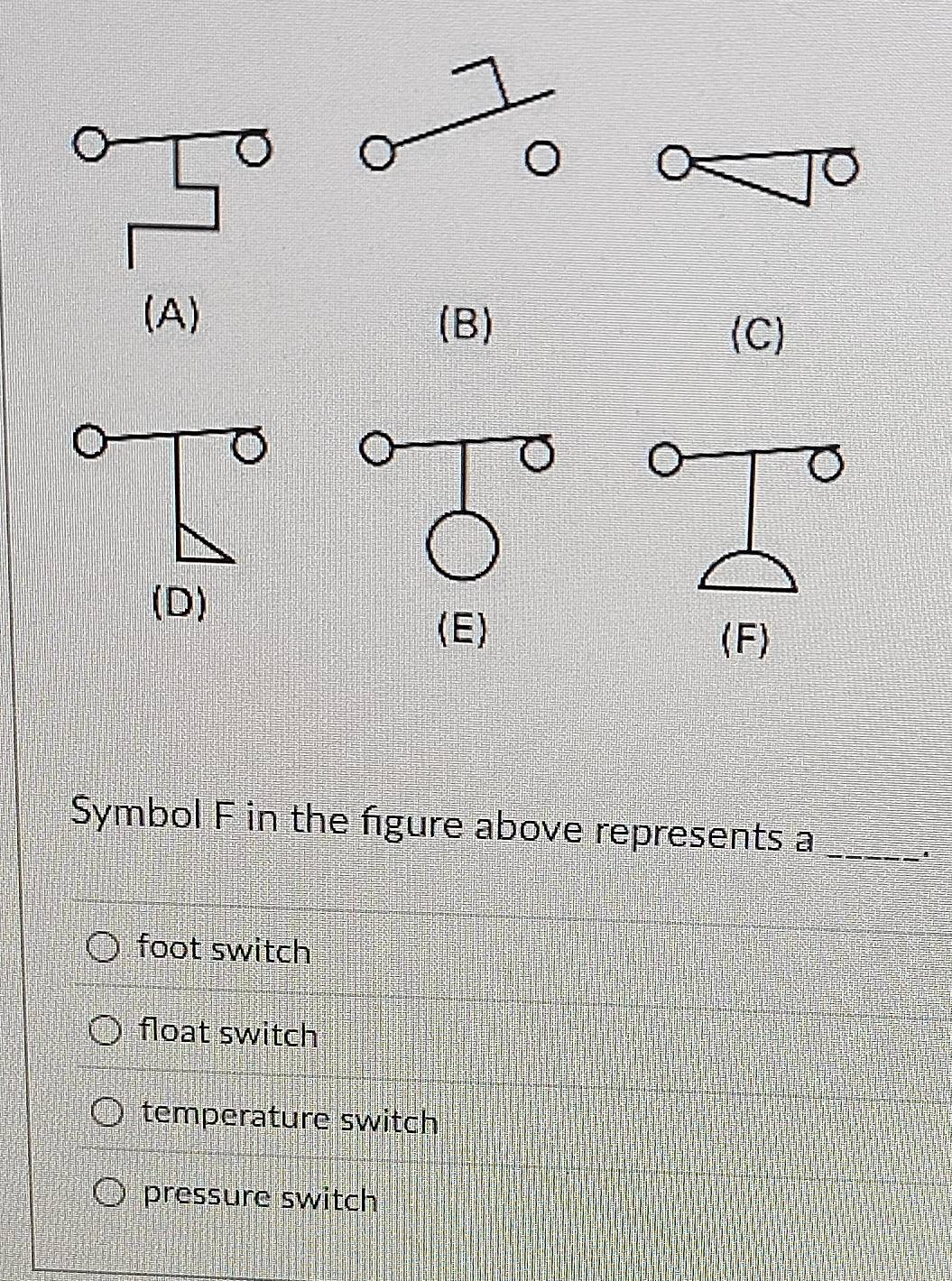 Solved: Symbol F in the figure above represents a_ foot switch float ...