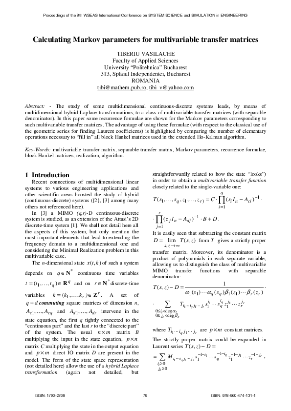 (PDF) Calculating Markov parameters for multivariable transfer matrices