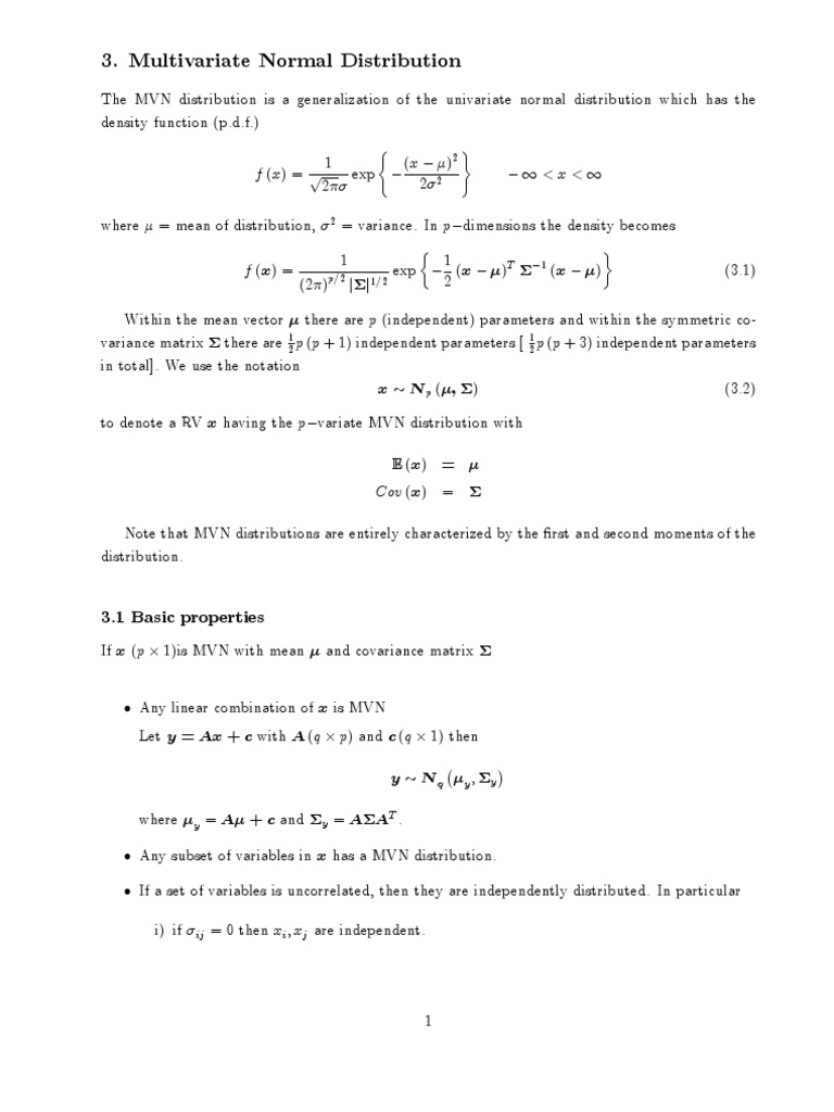 Pdf 3 - Multivariate Normal Distribution: Independence Proofs - Studocu