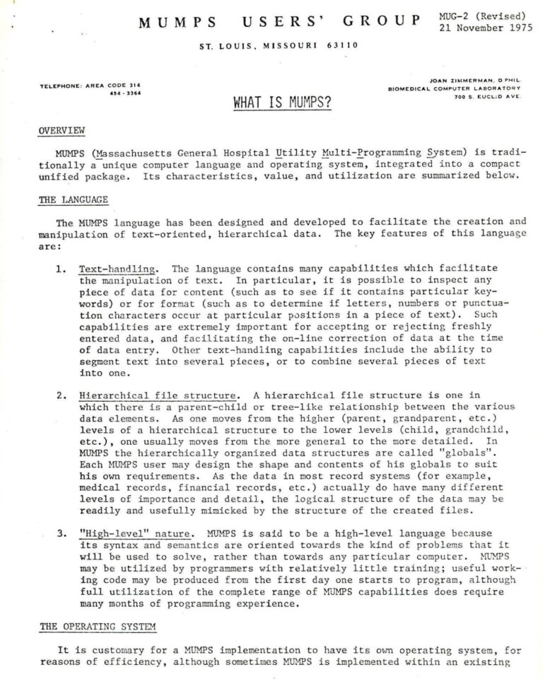 MUMPS Programming Language Information & Resources ...
