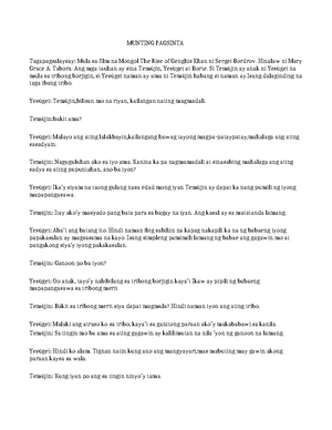 Munting Pagsinta: Isang Pagsusuri sa Pelikulang Mongol (K081) - Studocu