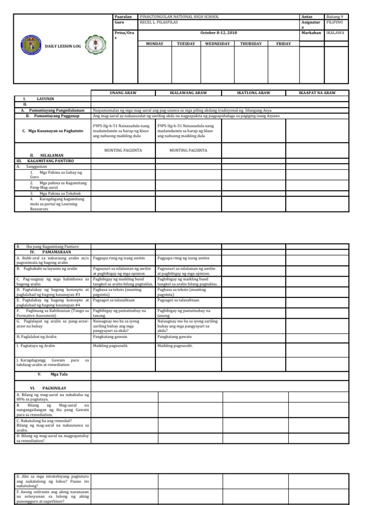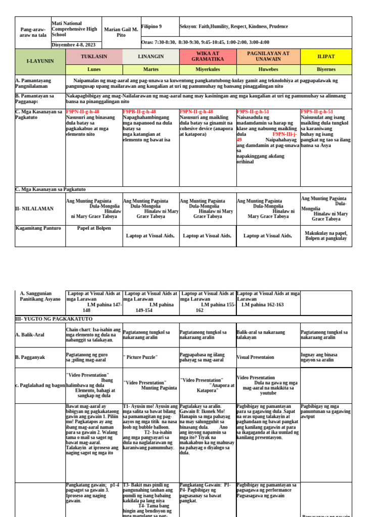 Masusing Banghay-Aralin sa Filipino 9: Munting Pagsinta - Studocu