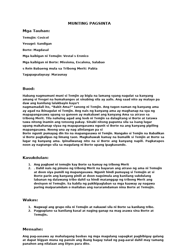 Buod NG Munting Pagsinta | PDF