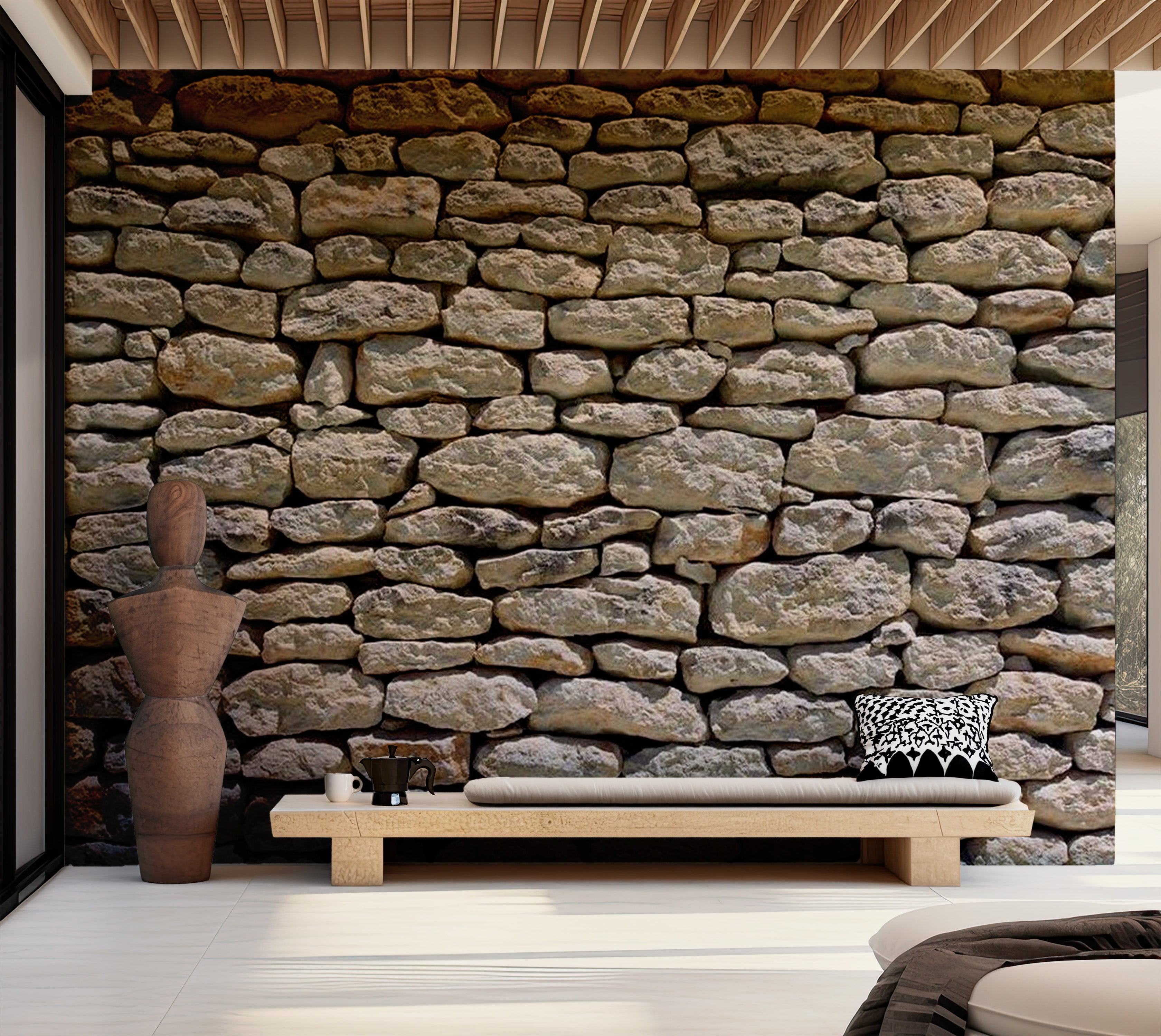 Stacked Stone Wall Mural - Natural Rock Wallpaper Mural