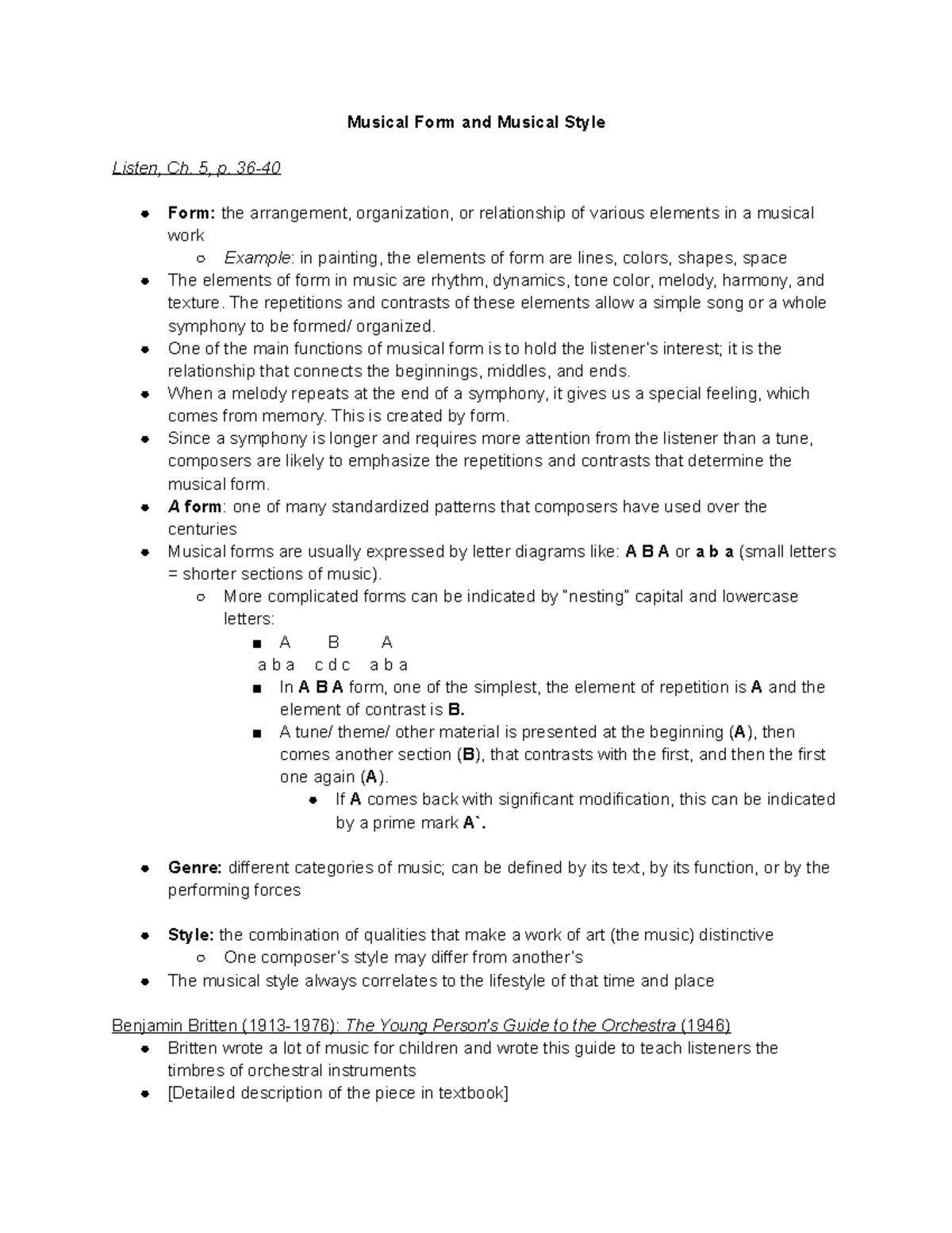 9/10 Assignment - Musical Form and Musical Style Listen, Ch. 5, p. 36 ...