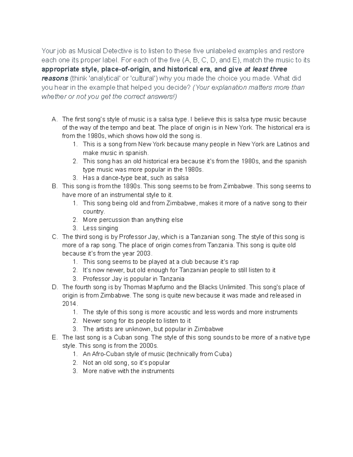Musical Detective - assignment - Your job as Musical Detective is to ...