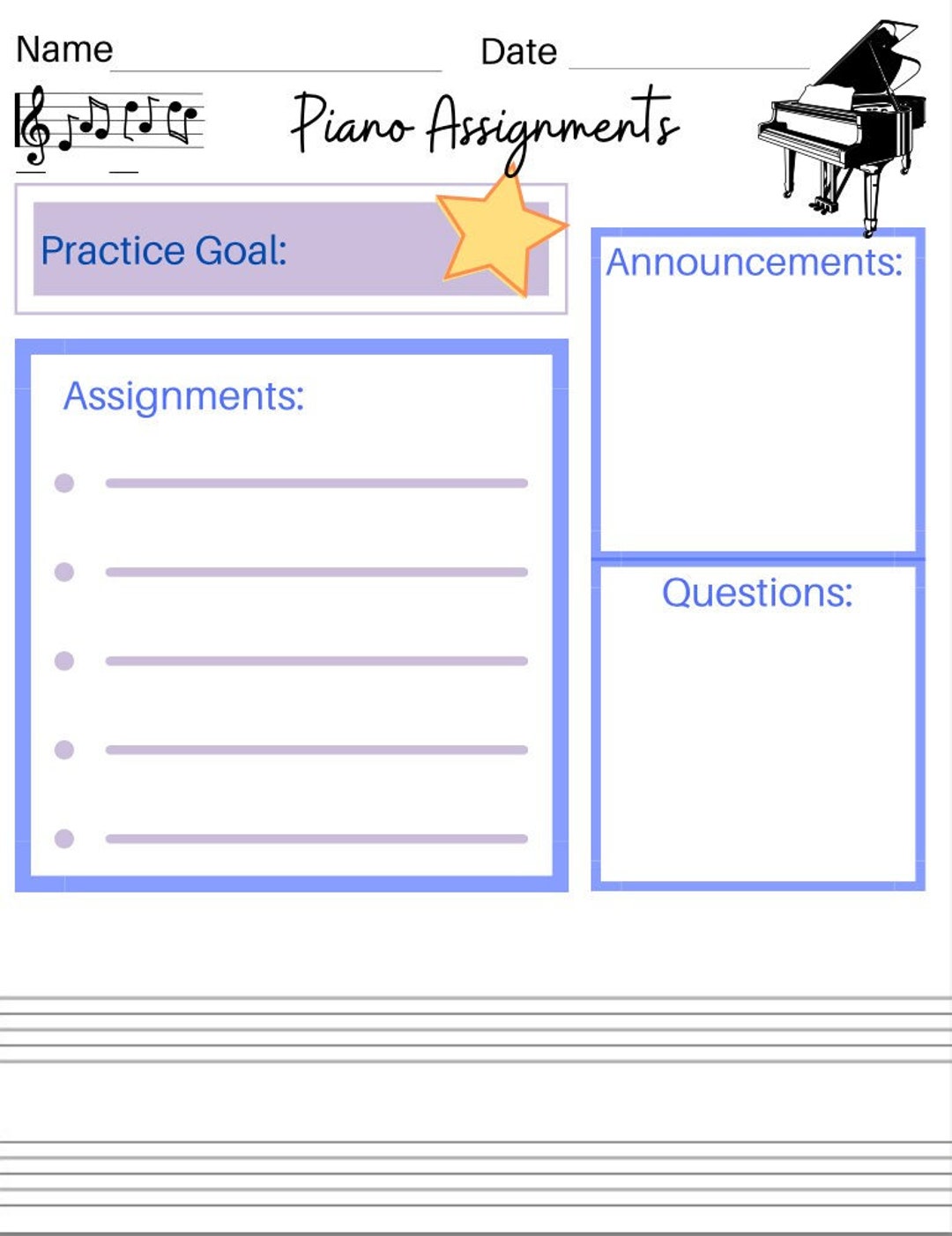 Musical Assignment Sheet Template - Etsy