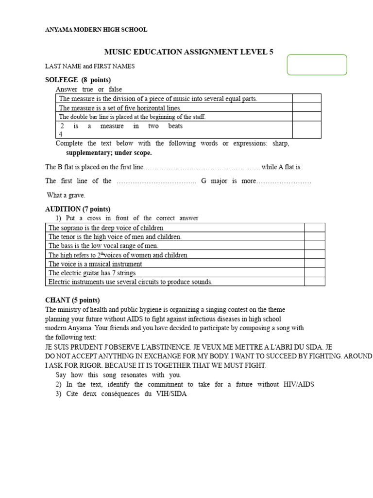 Musical Education Assignment Level 5th and 3rd 2024 | PDF | Singing ...