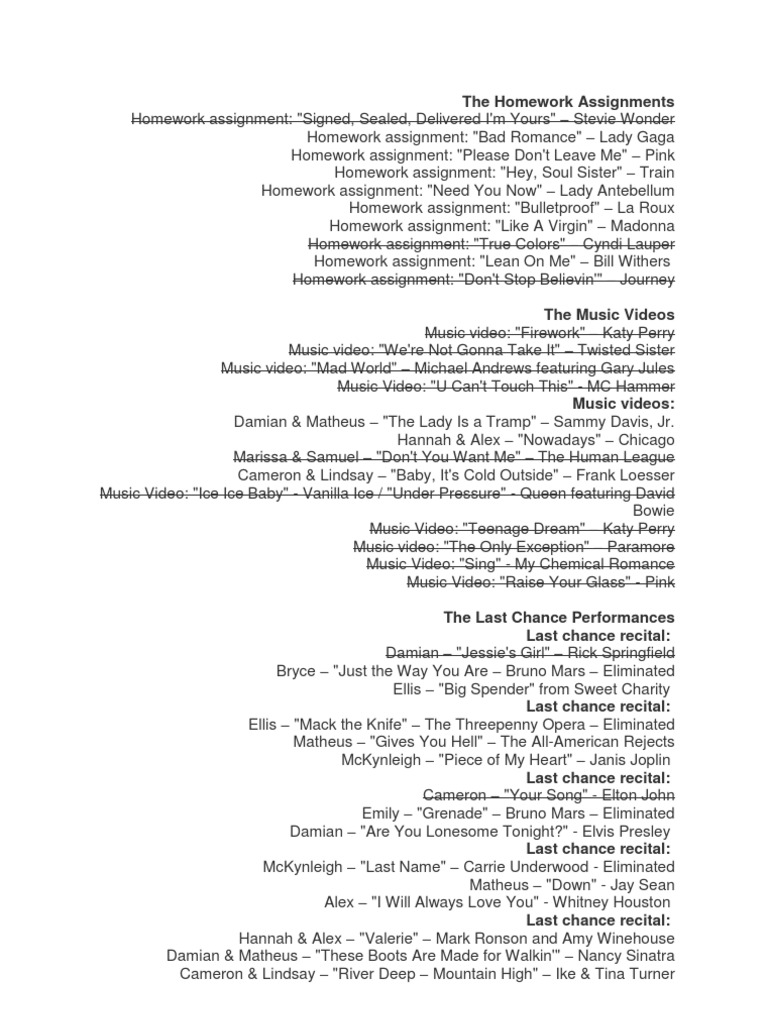 Music Assignments and Performances List | PDF | American Musicians ...