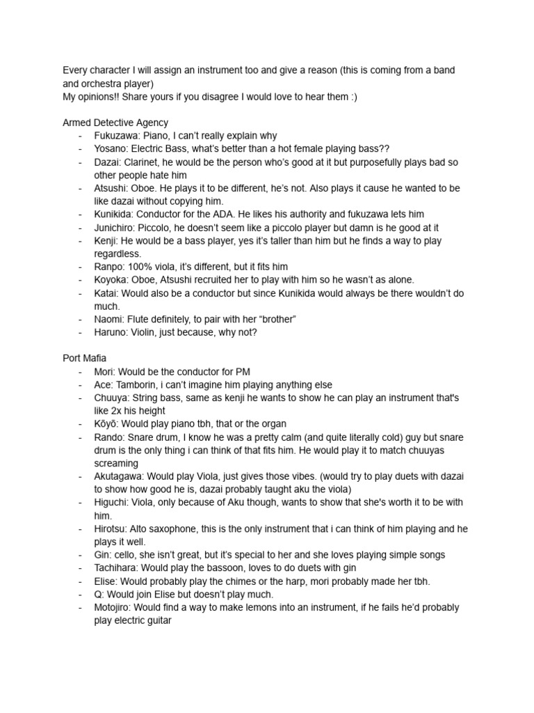 BSD Instrument Assignment | PDF | Double Bass | Musical Instruments