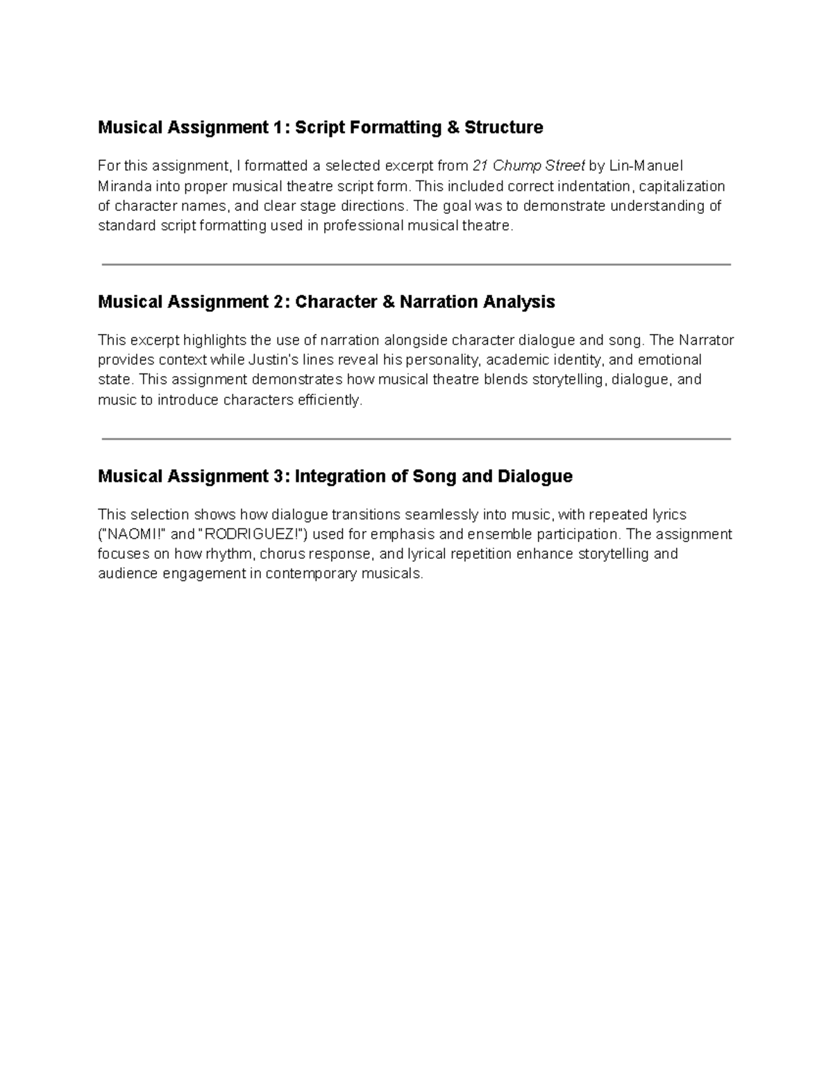 Alternate Assignment For Musical Theatre | Download Free PDF | Musical ...