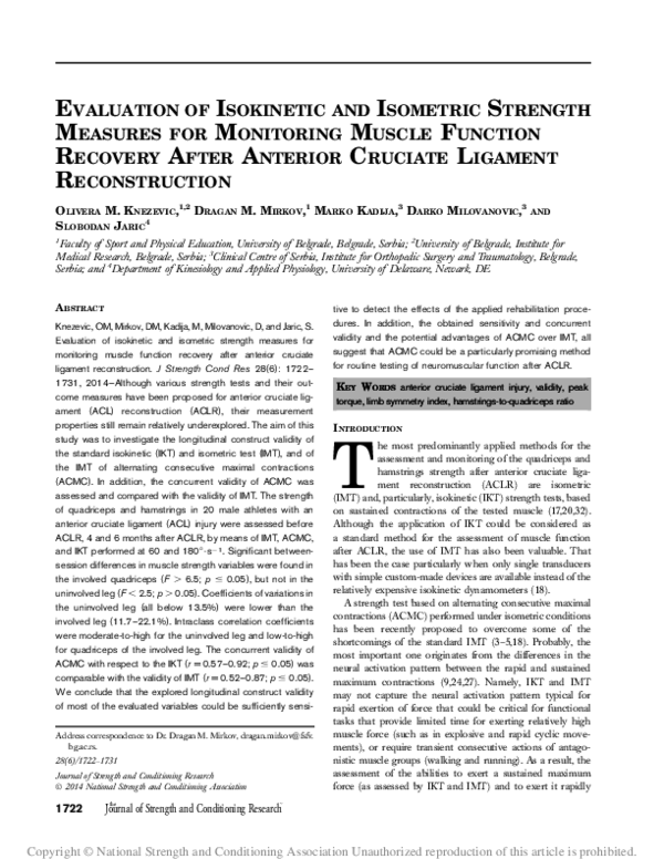 (PDF) Evaluation of isokinetic and isometric strength measures for ...