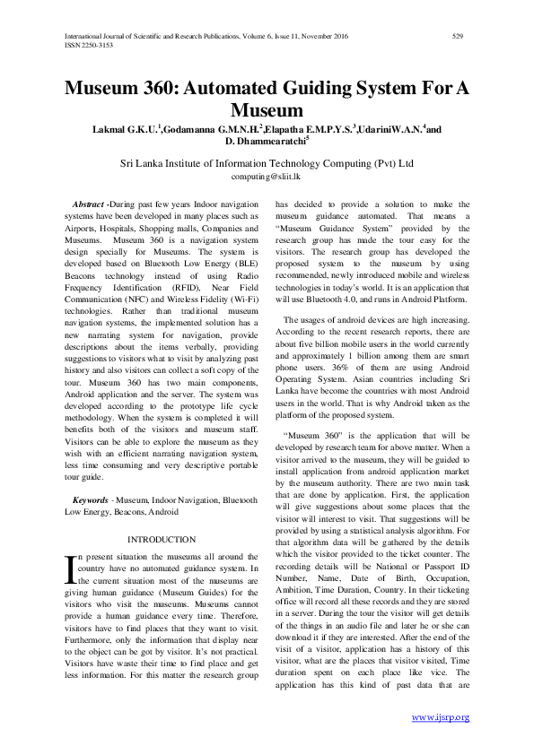 (PDF) Museum 360: Automated Guiding System For A Museum
