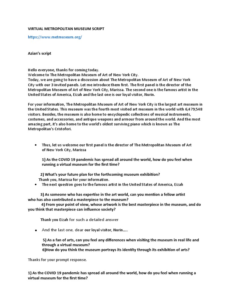 494312944 Virtual Museum Script 1 2 1 - VIRTUAL METROPOLITAN MUSEUM ...