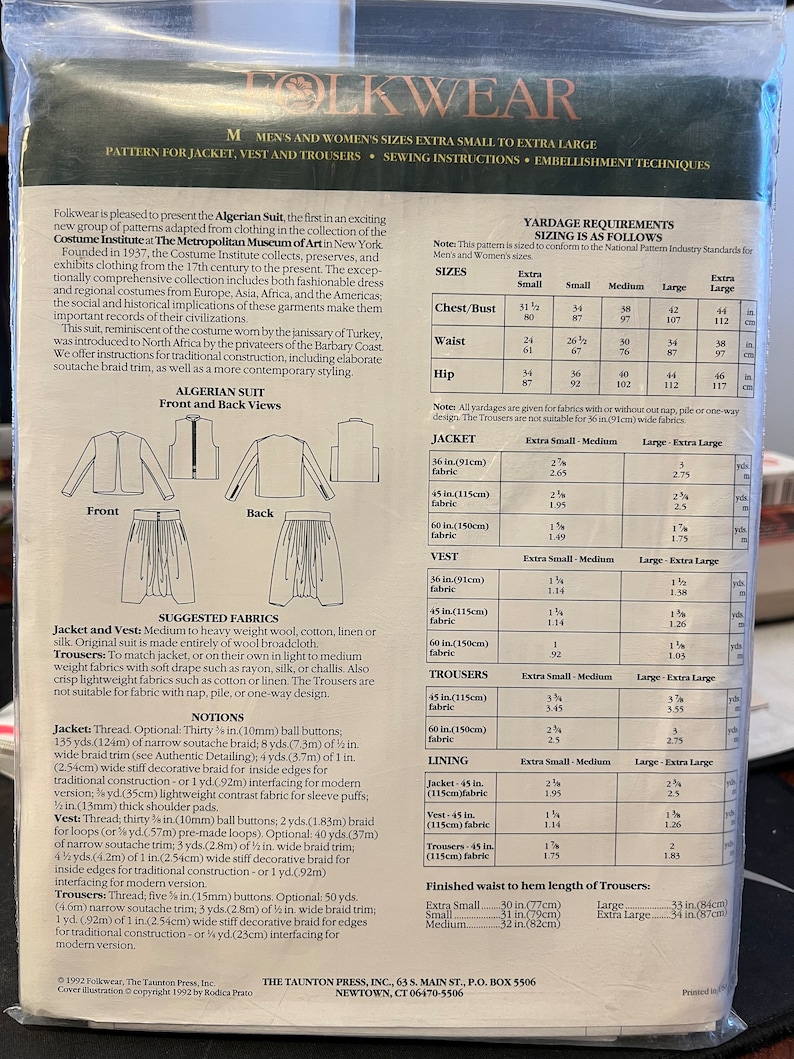 Folkwear Pattern 501 - Algerian Suit - the Metropolitan Museum of Art ...