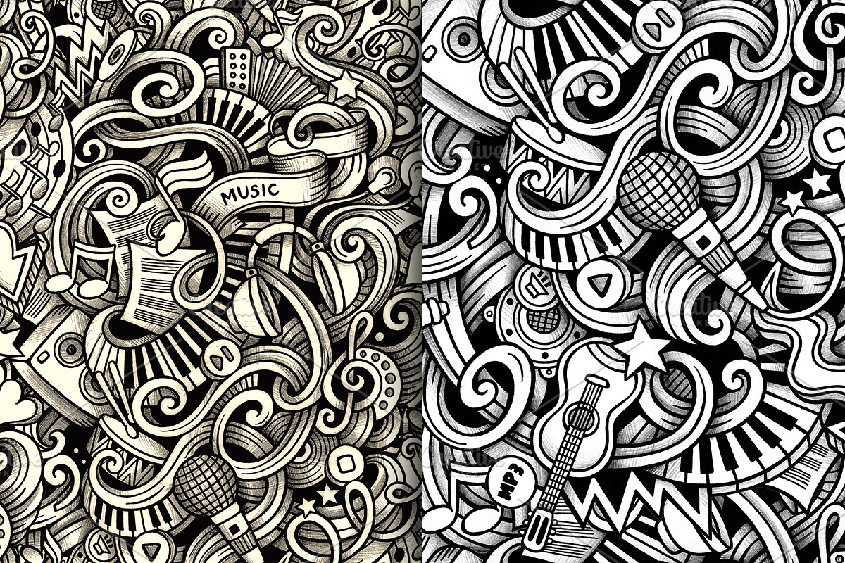 ♬Music Graphics Doodles Seamless Pattern - TemplateMonster