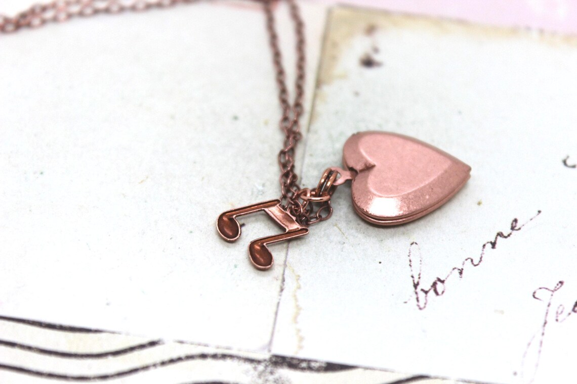 Music Notes Heart Locket. Necklace in Rose Gold Ox Shades - Etsy
