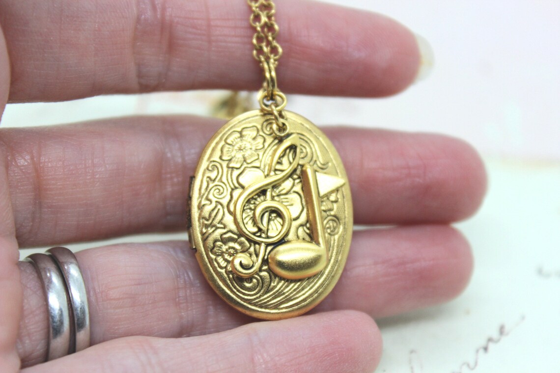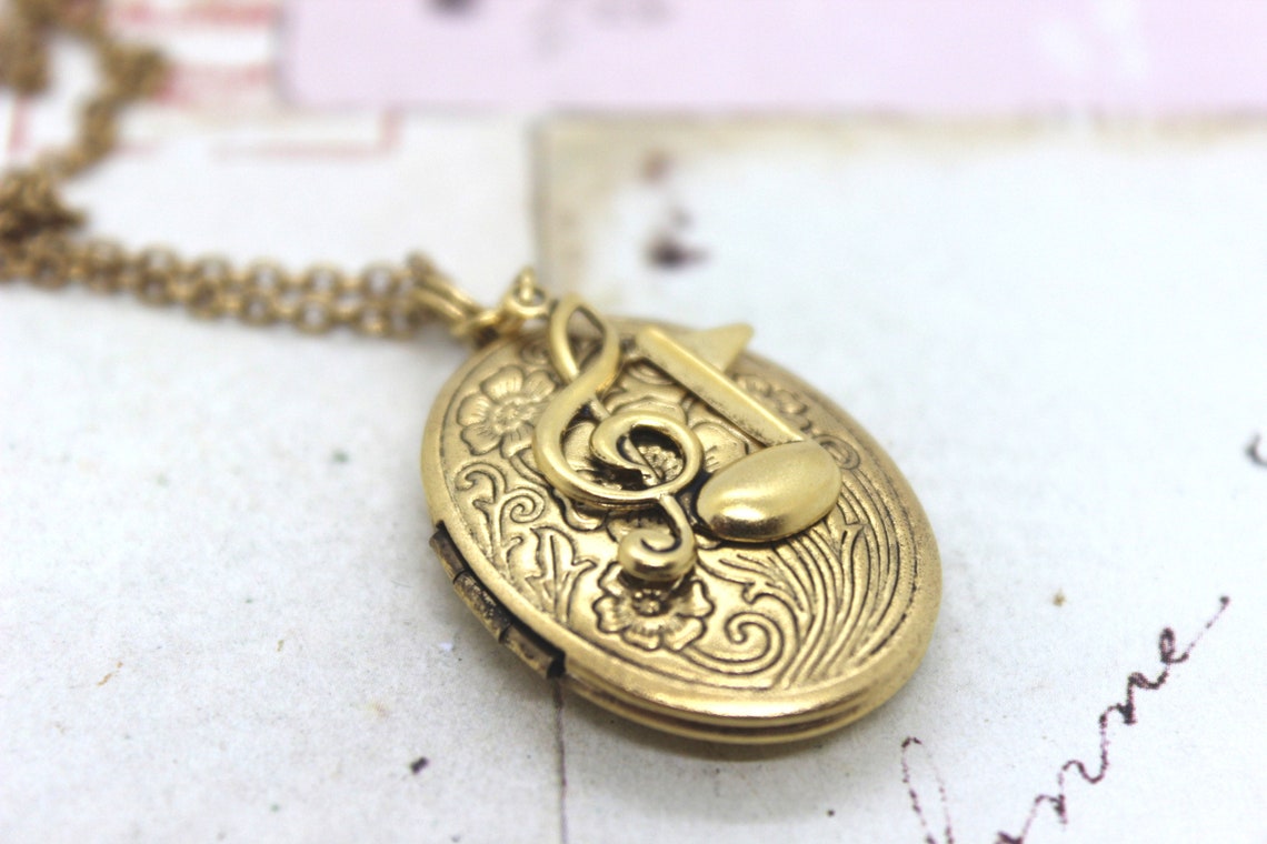 Music Notes Locket Necklace. Gold Ox - Etsy