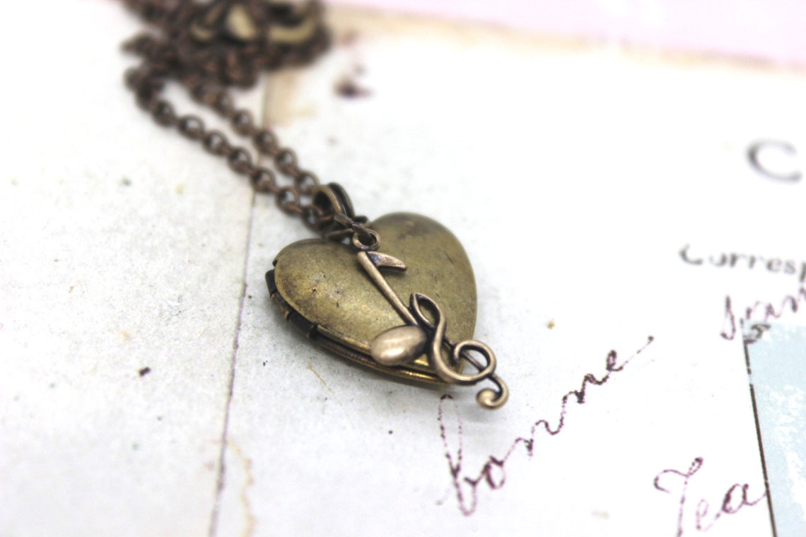 Music Notes Heart Locket Necklace. Brass Ox - Etsy