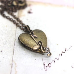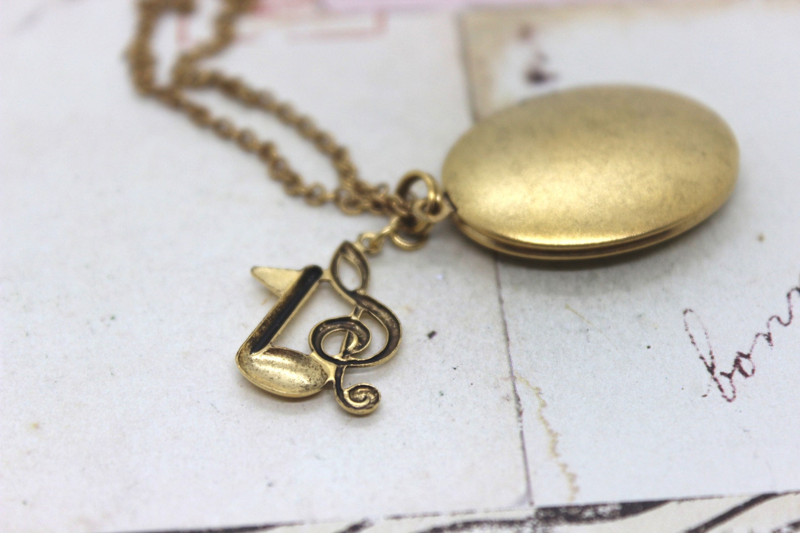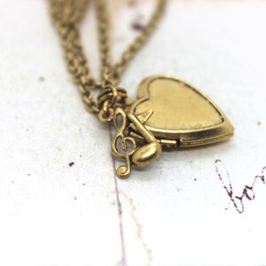 Antiqued Brass Locket Necklace, THE G-CLEF, Music Notes Necklace, Music ...