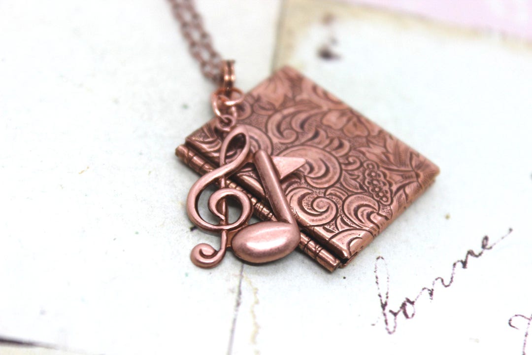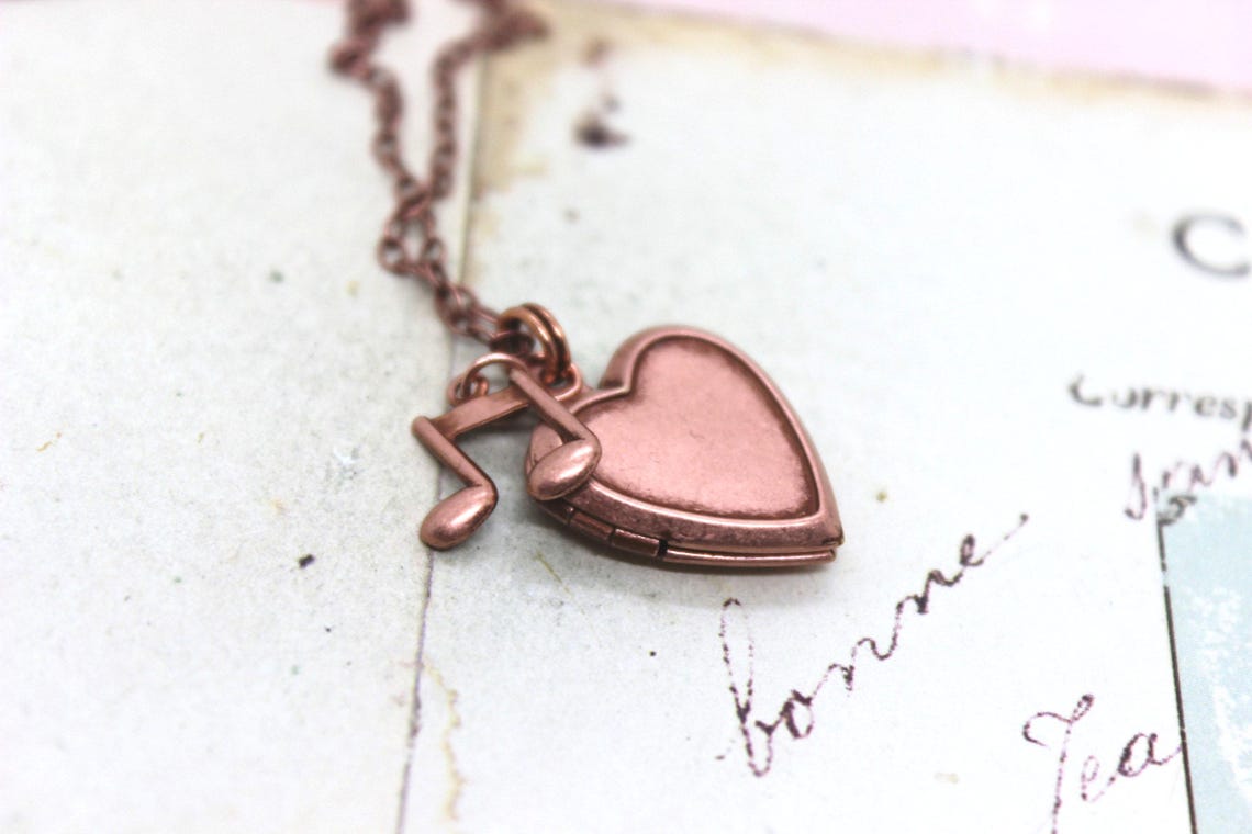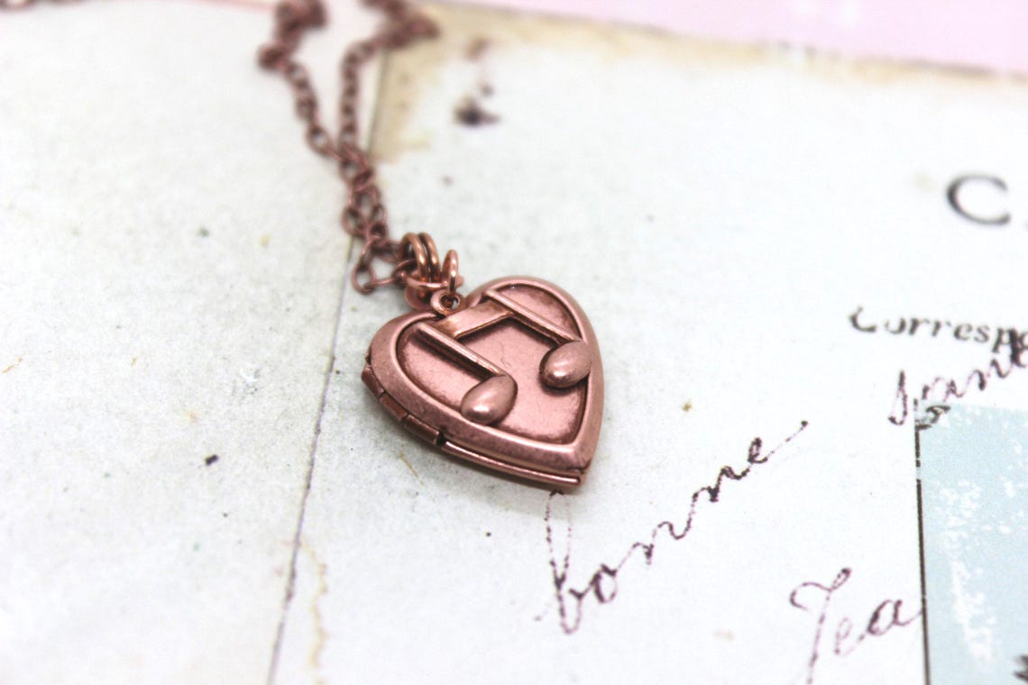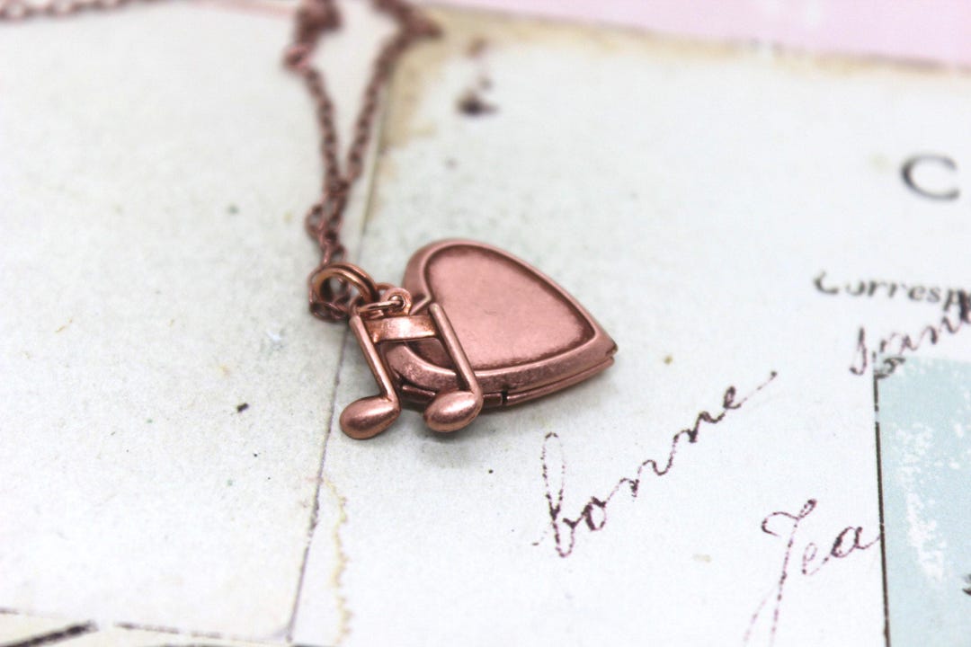 Music Note. Heart Locket Necklace. in Copper Ox Small Notes - Etsy