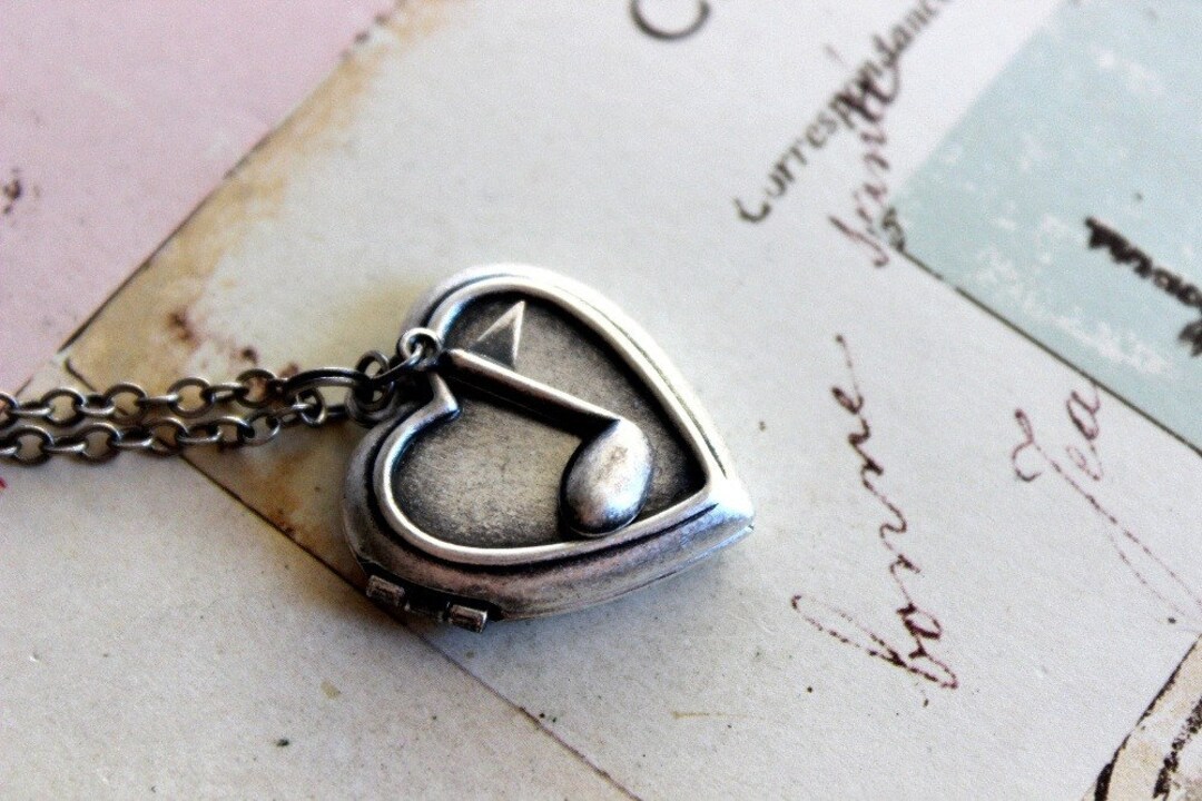 Music Notes. Heart Locket Necklace. in Silver Ox - Etsy