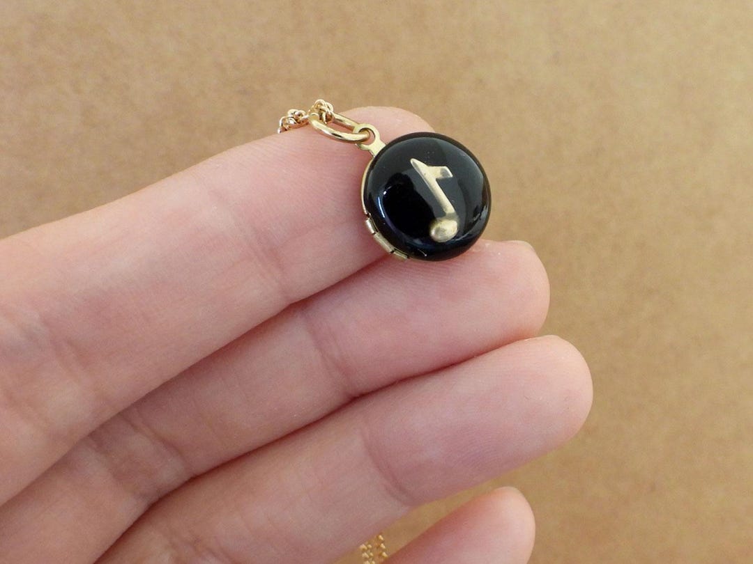 Tiny Gold Music Note Locket Necklace Vintage Brass Song Locket Black ...