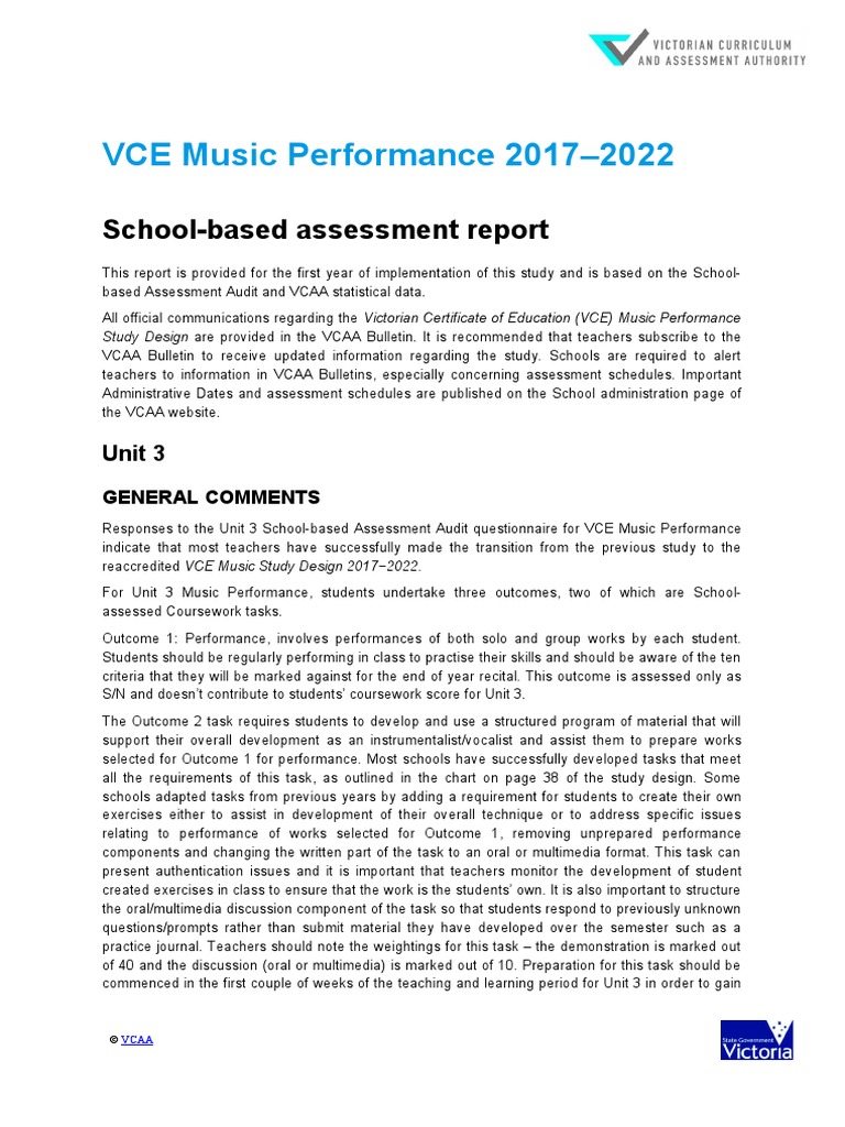 VCE Music Performance 2017-2022: School-Based Assessment Report | PDF ...