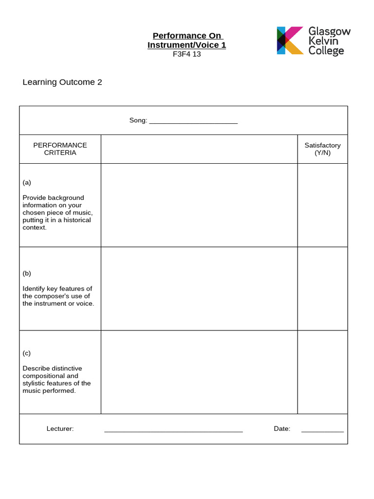 Music Performance Evaluation Template