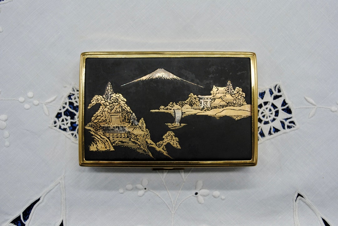 Vintage Japanese Damascene Musical Compact. Stunning Clover Powder ...