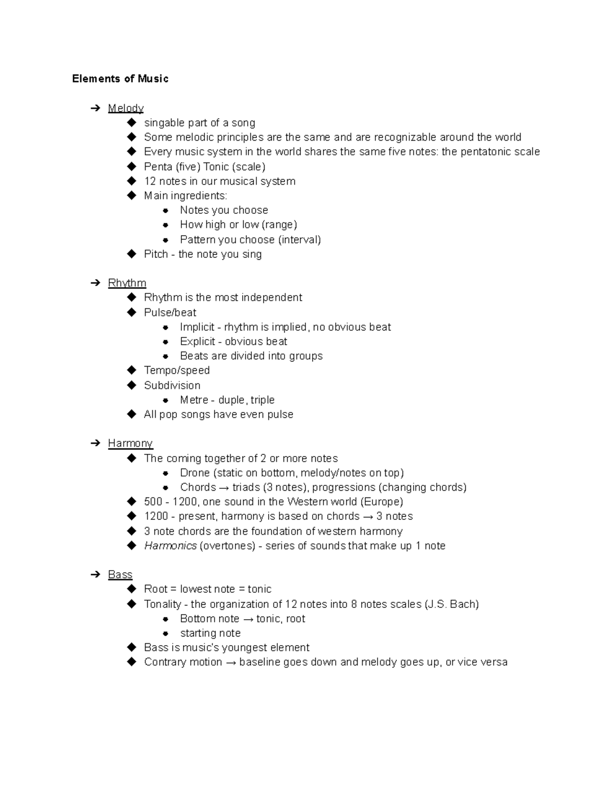Elements of Music - Elements of Music Melody singable part of a song ...