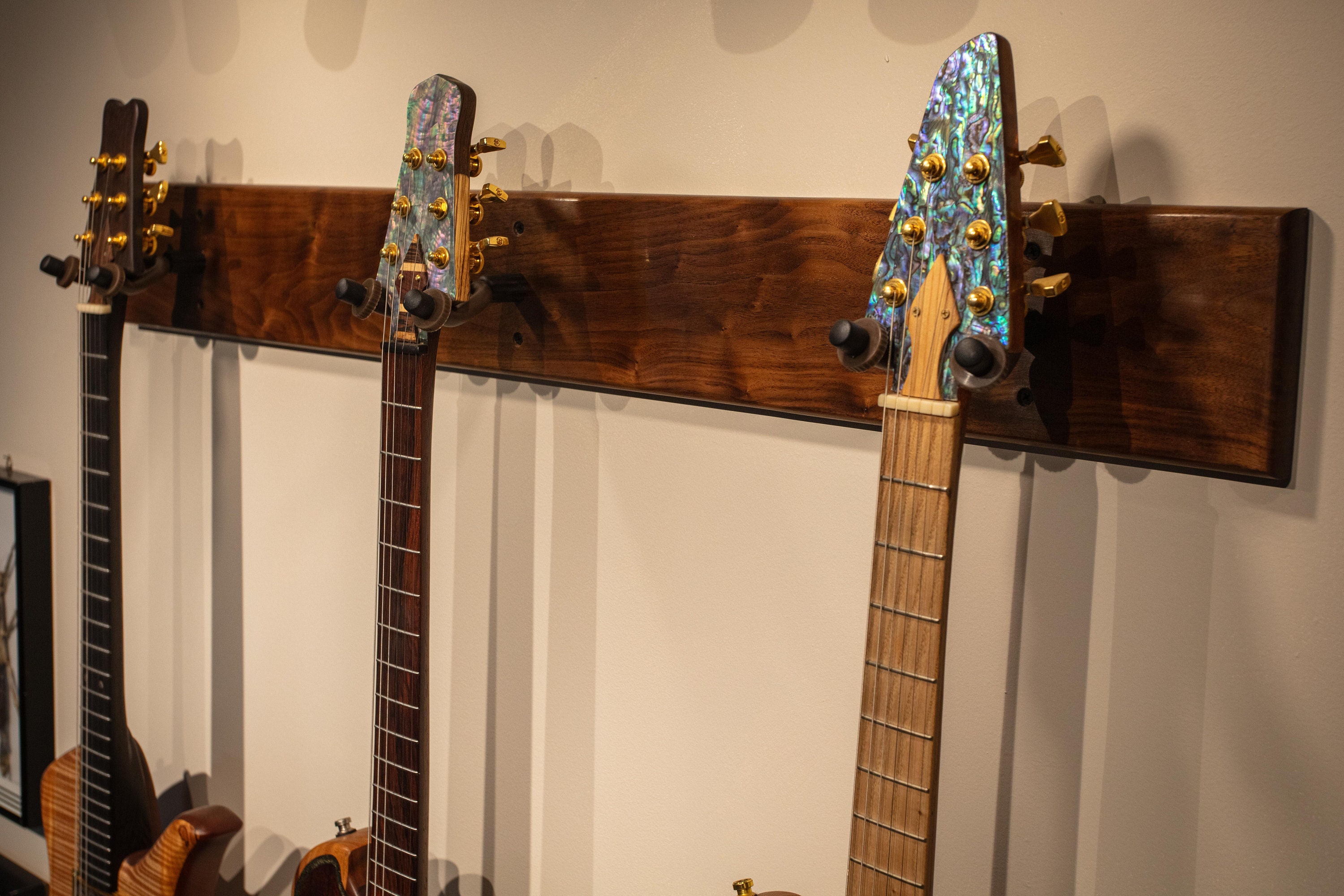 Guitar Wall Mount - Walnut Guitar Rack - Instrument Wall Display ...
