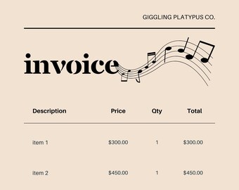 Music Service INVOICE Template Printable PDF Notes - Etsy