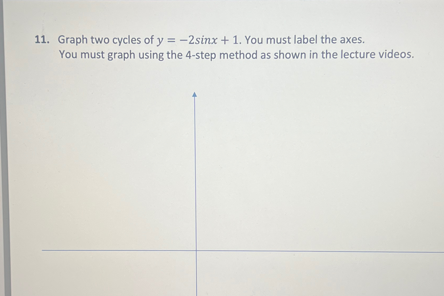 Solved Graph two cycles of y=-2sinx+1. You must label the | Chegg.com