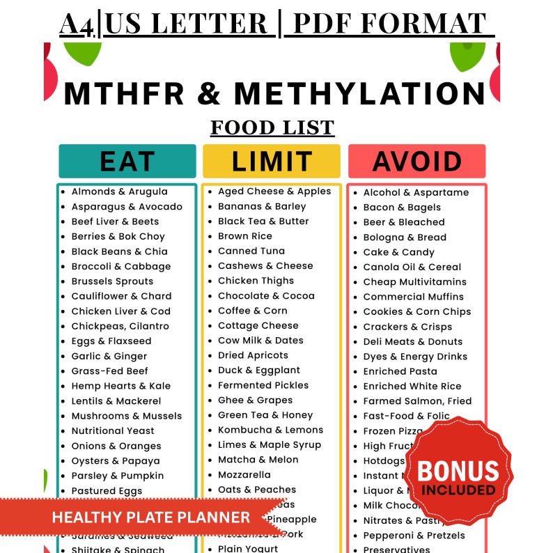 MTHFR Diet Food List PDF – Low Folic Acid Grocery Guide, Methylation ...