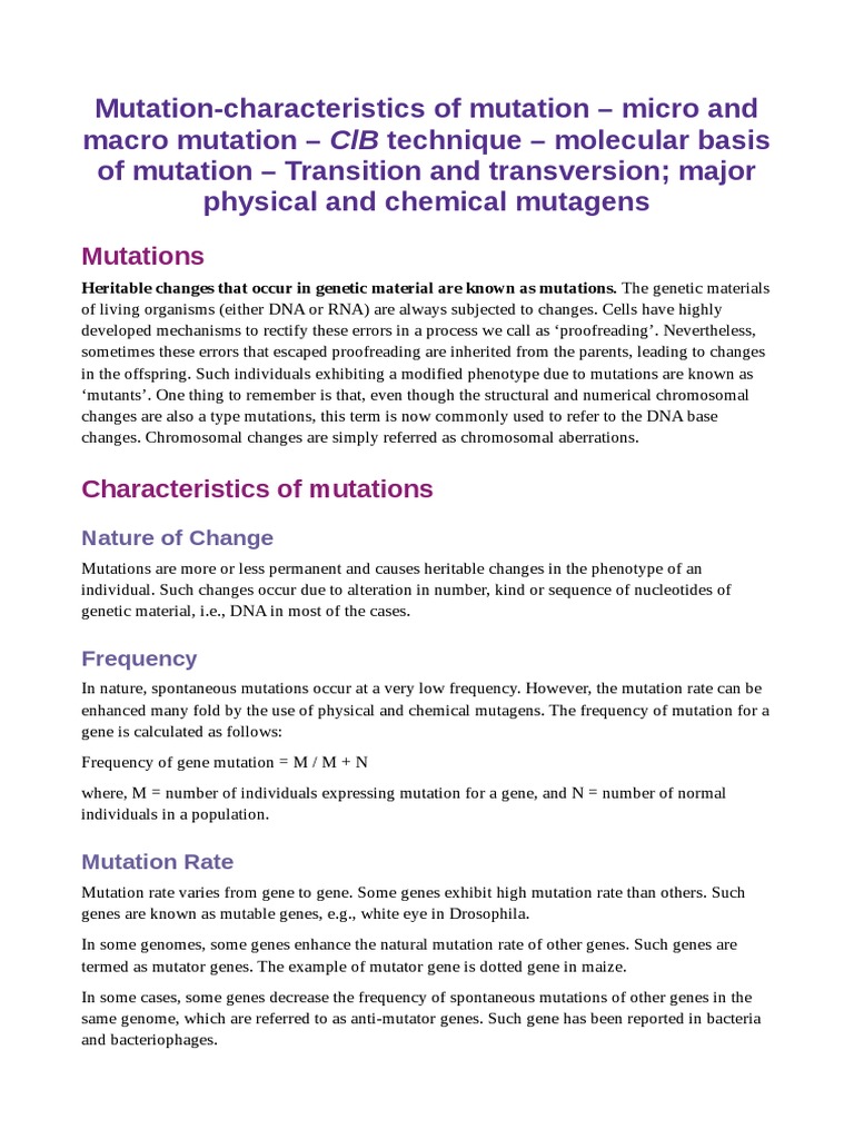Mutation (Gene Mutation) Notes | PDF | Point Mutation | Mutation