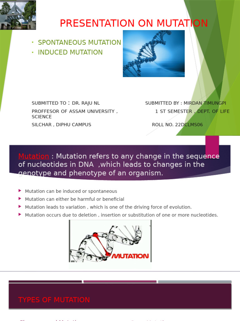 Mutation and their Types # Spontaneous Mutation# Induced Mutation | PDF