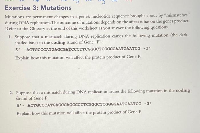 Mutation Practice Worksheet - BIO 1150 - Studocu