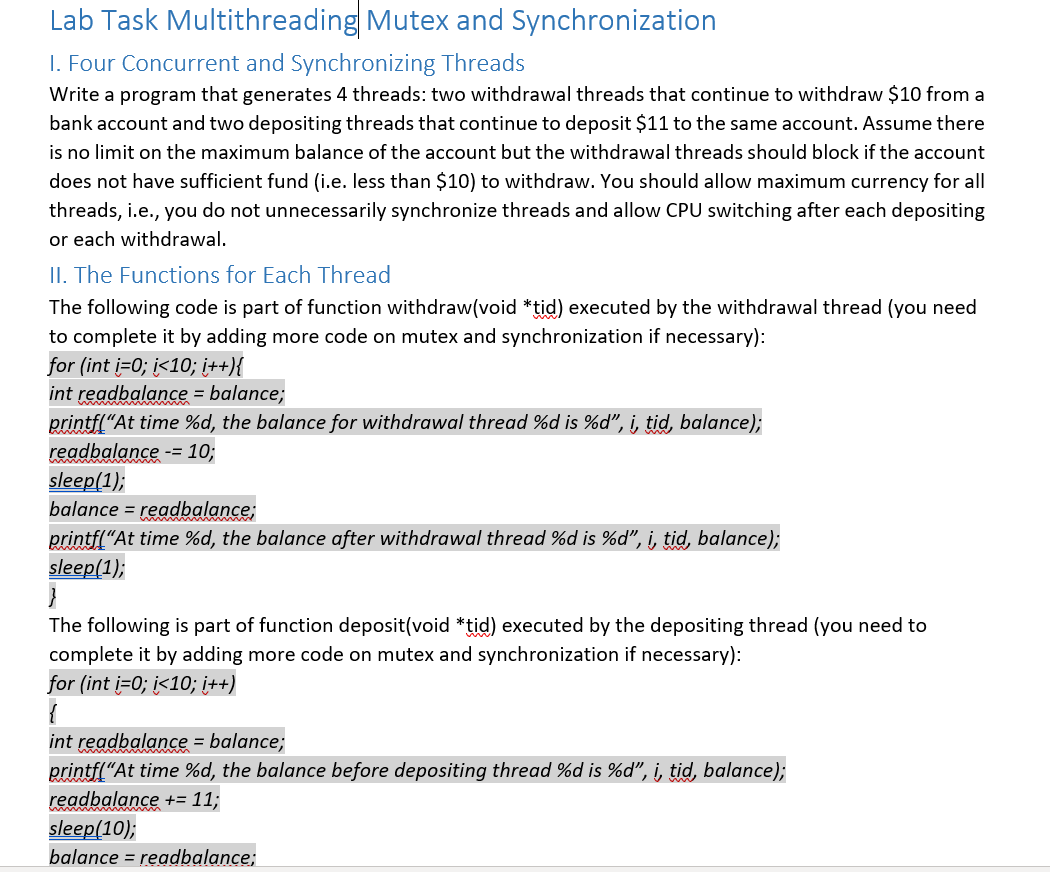 Lab Task Multithreading Mutex and Synchronization 1. | Chegg.com