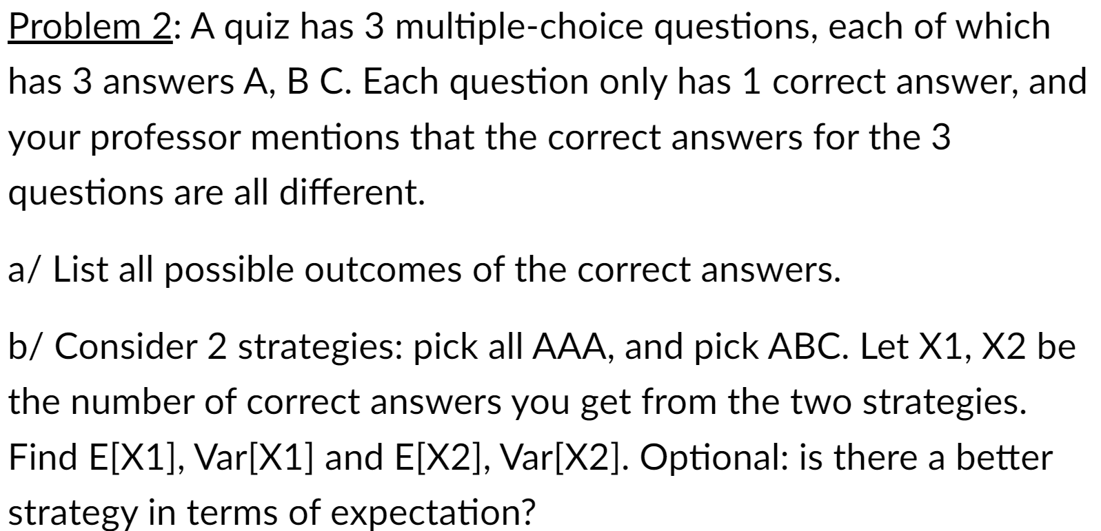 Solved Problem 2: A quiz has 3 multiple-choice questions, | Chegg.com