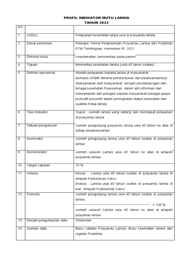 Profil Indikator Mutu Lansia 2023 | PDF