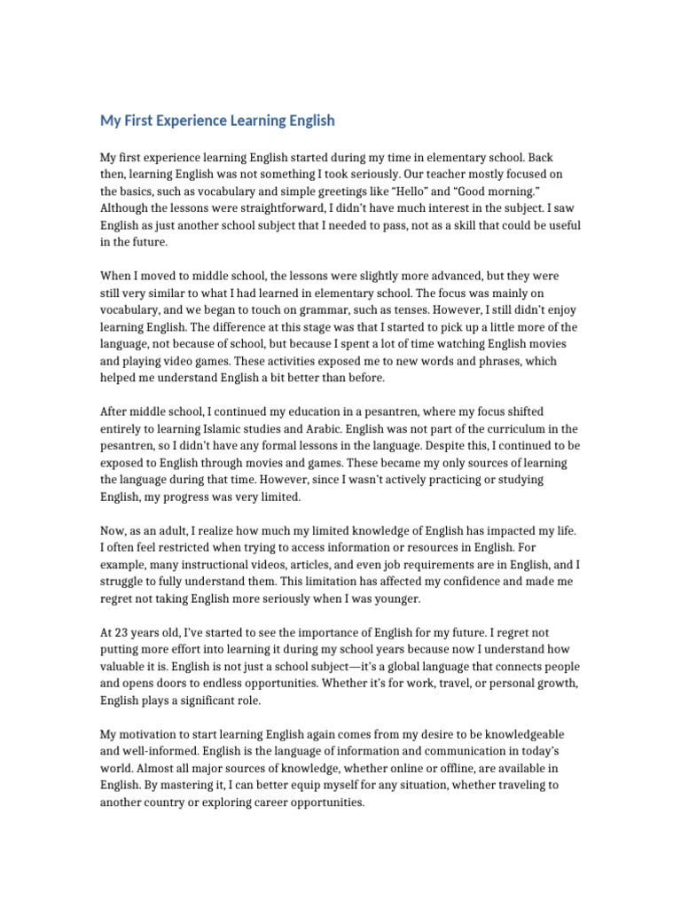 My First Experience Learning English | PDF | Schools | English Language