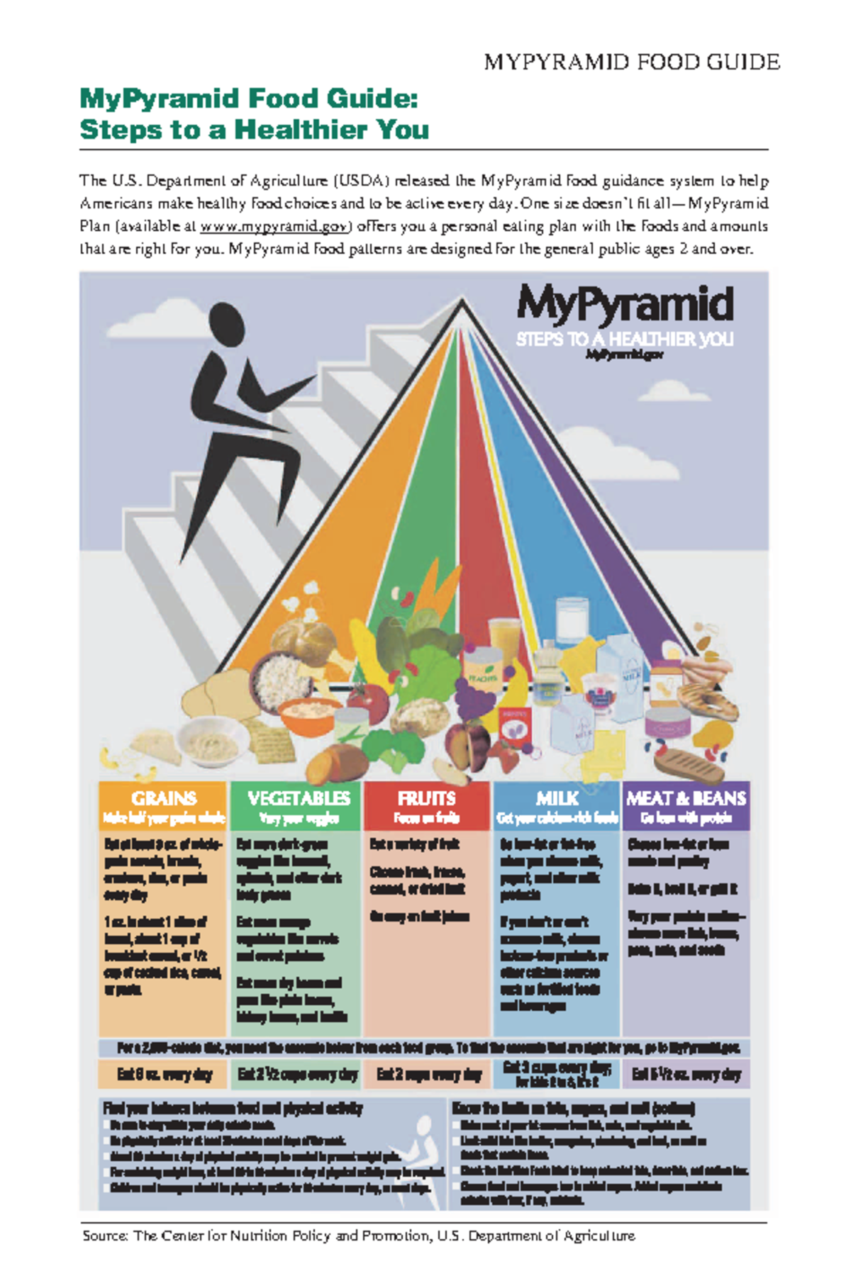 Mypyramid - nutrition - MYPYRAMID FOOD GUIDE MyPyramid Food Guide ...