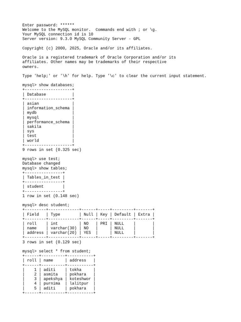 MySQL 9.3 Command Line Client1 | PDF | My Sql | Software Engineering