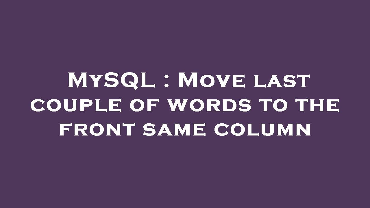 MySQL - How to Trim and Transfer Data from One Column to Another & Move ...