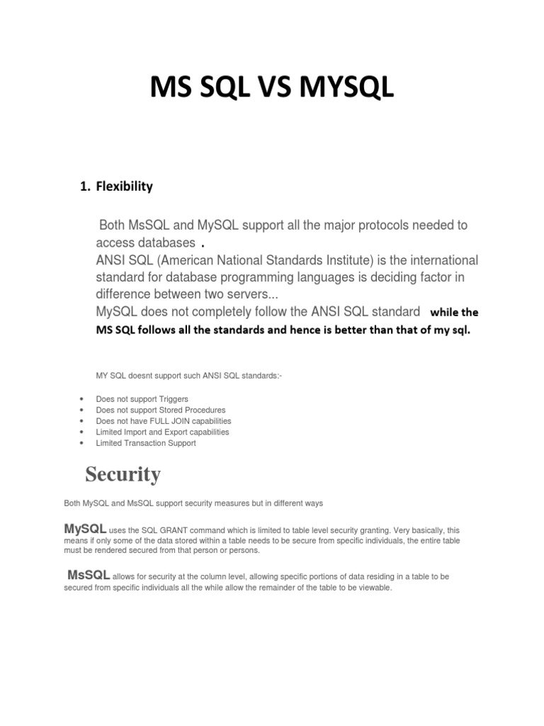 Comparison of MySQL and MS SQL | PDF | My Sql | Microsoft Sql Server